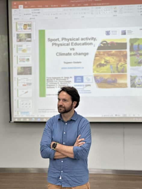 Tegwen Gadais (Co-Chair) delivered a special lecture to the (DTM) Dream Together Master 12th batch students on the topic: “Sport, Physical Activity, Physical Education vs Climate Change.” The lecture explored how sport and physical education can both impact and be impacted by climate change. Students engaged actively, shared their thoughts freely, and explored the topic from multiple cultural and academic perspectives. Thought-provoking discussions touched on sustainability, environmental responsibility in sport, and the evolving role of sport professionals in facing global challenges. A big thank you to Umair Asif (PhD Student in the Chair) for helping organize this inspiring session!